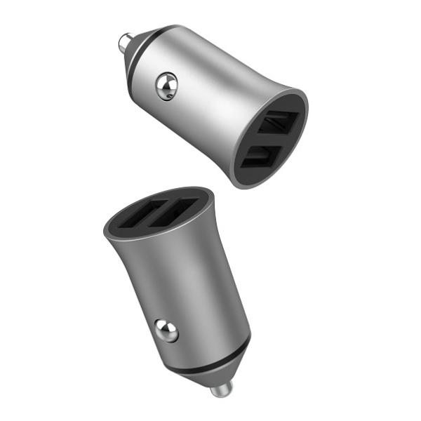 Dual Port Car Charger Aluminium Alloy 2.4A Car Charger Dual USB Output Ports for Charging